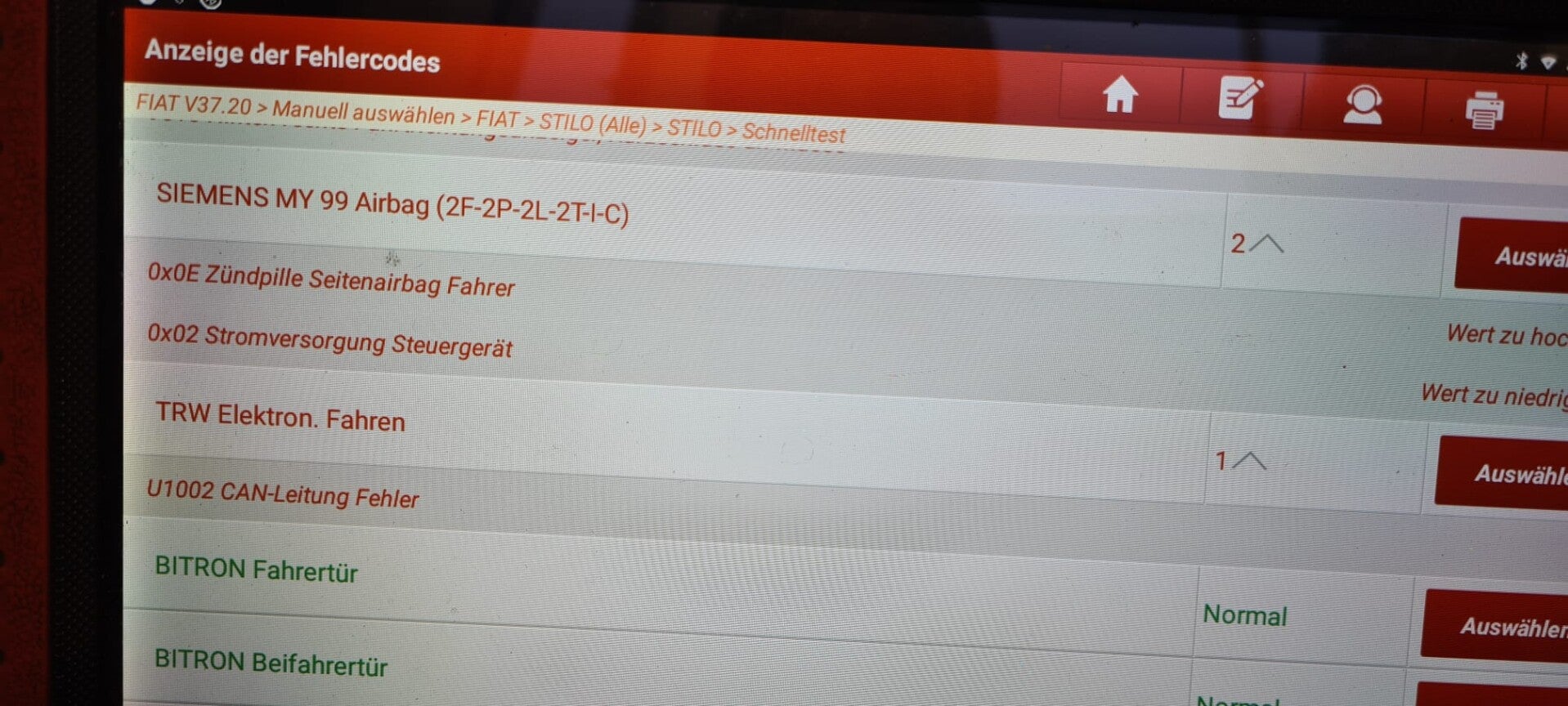 ich brauche dringend Unterstützung bei einem Problem mit dem Fiat Stilo meines Sohnes. Ab und zu geht der Wagen während der Fahrt oder im Stand einfach aus und startet dann entweder sofort oder innerhalb von ein bis zwei Minuten wieder. Zusätzlich erscheinen immer wieder Fehlermeldungen auf dem Tacho.
